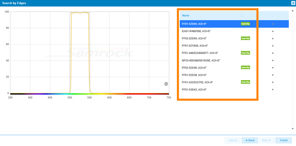 PRO TIP: Upload your spectrum to SearchLight, and click on Product search to find the quick ship option that correspond to your filter.
