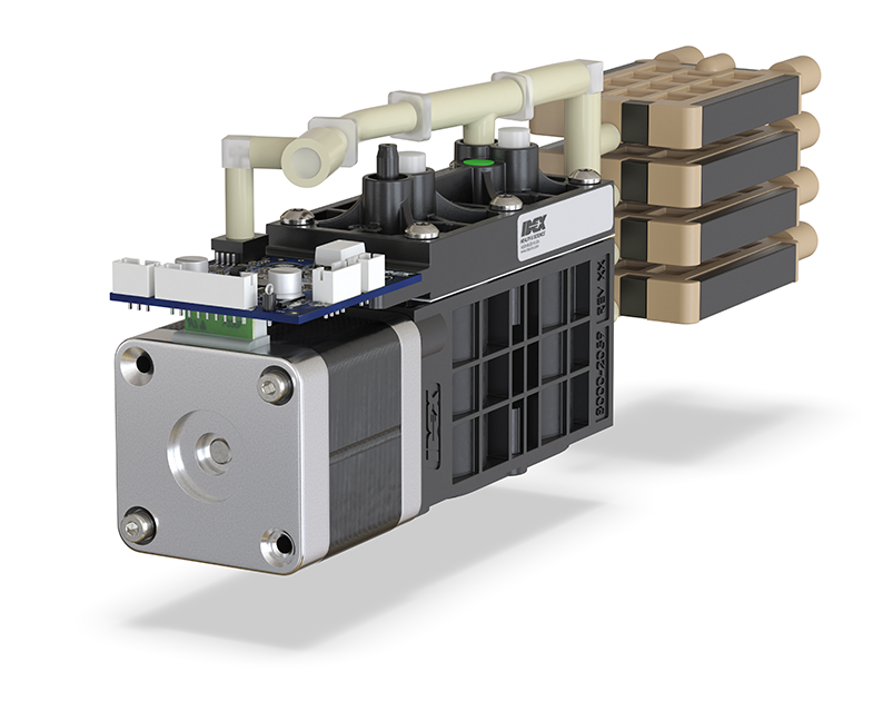 Our next generation degassing vacuum control system is engineered to provide stress-free operations with consistency, reliability, and long life for degassing applications where dissolved gasses and bubbles are problematic. The new degassing vacuum control dual-stage molded pump is designed to work flawlessly with IDEX Health & Science’s lumen and film degassing chambers and control systems. With engineered components, this new pump offers a 40% average decrease in acoustic variation across the critical operating range.