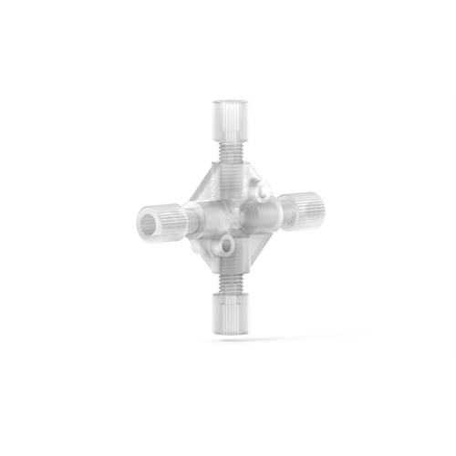 Our ETFE Low Pressure Cross Assembly can handle a pressure rating 1000 psi (69 bar). It is designed with convenient mounting holes. The P-634 is designed for 1/16OD tubing. This assembly comes complete with (4) P-245 Nuts and (4) P-200N Ferrules.