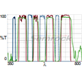 This 6-filter "Pinkel" quad-band set is designed for sequentially imaging DAPI, FITC, TRITC, and Cy5 (and other key fluorophores – see complete list above). This state-of-the-art set represents a break-through in quad-band performance, and has been tested by independent researchers to have up to four times the brightness, twice the signal-to-noise ratio and substantially lower crosstalk than any other such quad-band filter set on the market. The complete set is comprised of a quad-band beamsplitter and a quad-band emitter (these can be offered assembled in a microscope cube), plus four "no burn-out" single-band exciters that are intended to be mounted in an exciter filter wheel or slider.
