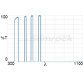 • Rabs > 94% 370 – 410 nm, Rabs > 94% 483 – 493 nm, Rabs > 94% 550 – 565 nm & Rabs > 94% 630 – 645 nm • Tavg > 93% 421 – 469 nm, Tavg > 93% 506.5 – 537 nm, Tavg > 93% 577 – 616 nm & Tavg > 93% 662 – 1100 nm • Flatness / RWE: Laser |